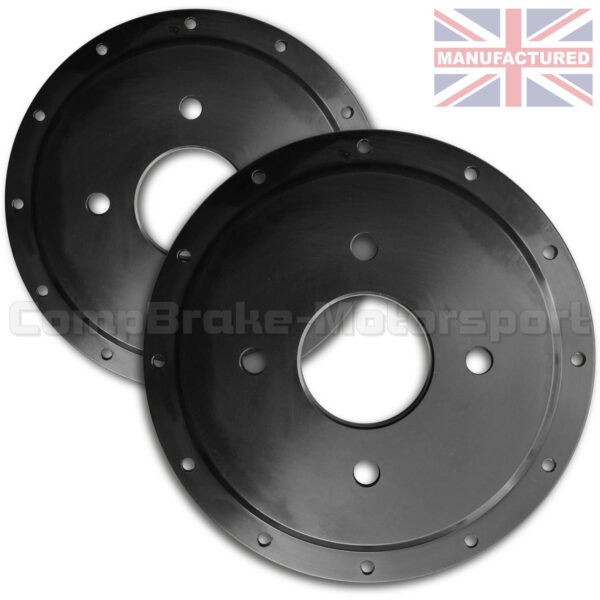 Powervane Rotors offer the ultimate in disc brake technology, internally vented with curved vanes, designed not to deteriorate, warp or crack under extreme braking conditions. This unique design virtually eliminates brake-fade; each disc has 6 slotted gas vents. The centre billet aluminium mounting top hat bell is hard anodised to increase strength and is secured by 12 stress-relieved; high tensile; cap head plated bolts; with heat resistant locking cleave nuts.