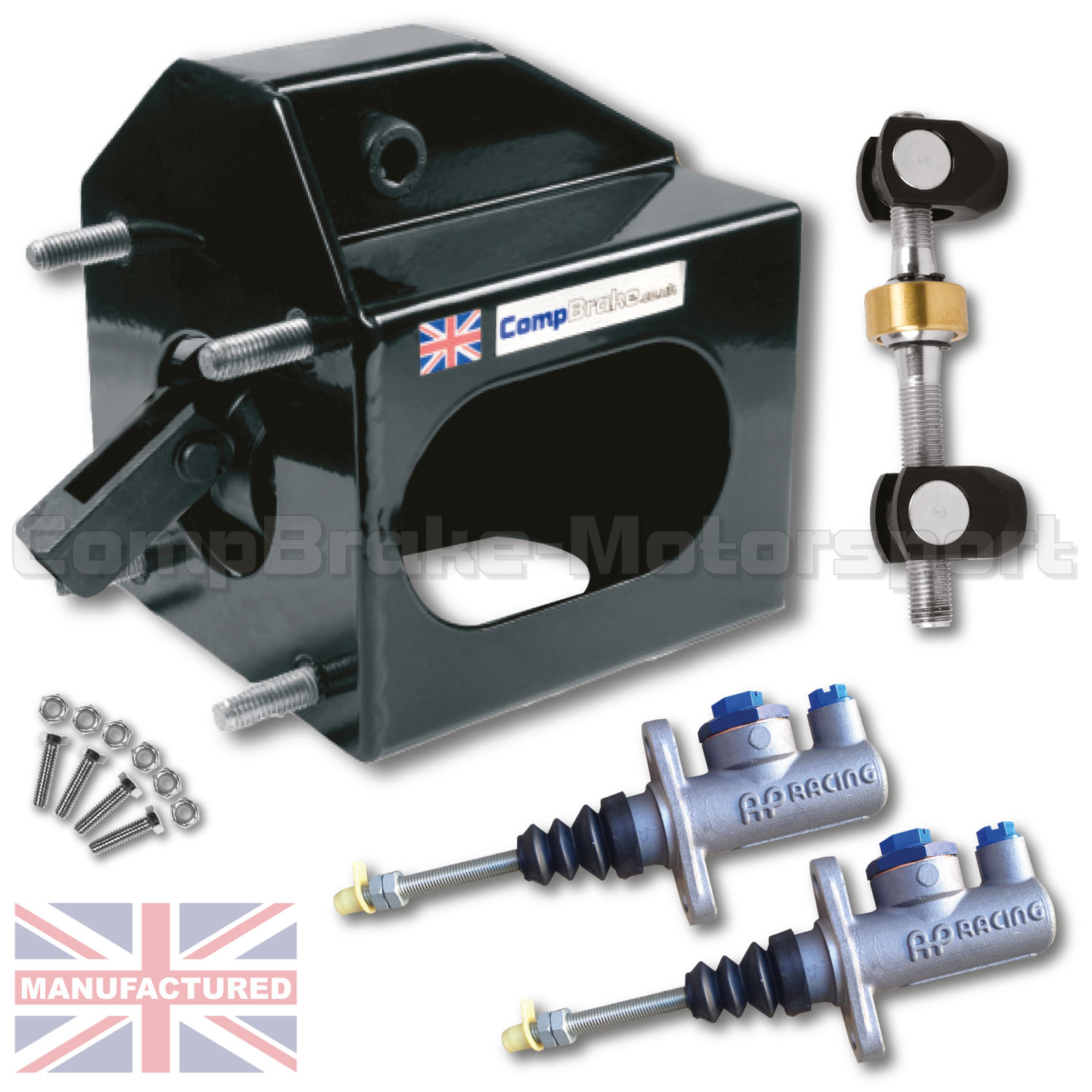 STANDARD BOX KIT INCLUDES – FORD MUSTANG BOX PLUS – [2 X AP MASTER CYLINDERS, SWINGING PIVOT, CLEVIS, FIXINGS & BALANCE BAR]